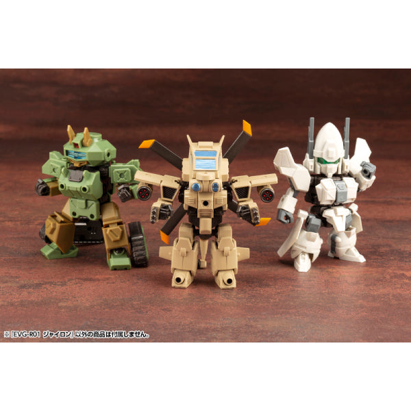 A new series of plastic model kits featuring cool and cute chibi robots by mechanical designer Kunio Okawara has arrived! The instructions for this series include a comic drawn by Kōichi Tokita. Always calm and composed, JYRO-N is a tactical support Evoroid that can transform from a chibi robot to a combat helicopter with no interchangeable parts required!