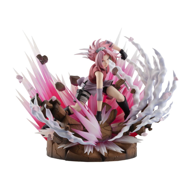 Sakura is finally joining the DX version of the Naruto Gals series! She has been posed using her Cherry Blossom Clash technique that shows off both the impressive chakra control and strength she acquired through her training.