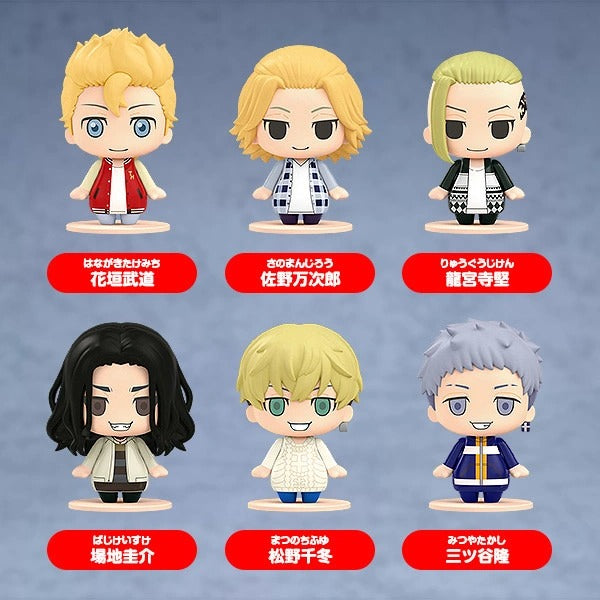 From the popular series "Tokyo Revengers" comes a set of Pocket Maquette collectible figures! The lineup includes "Takemichi Hanagaki", "Manjiro Sano", "Ken Ryuguji", "Keisuke Baji", "Chifuyu Matsuno" and "Takashi Mitsuya" in their casual clothes for a total of 6 varieties! Interchangeable parts are included to display them sitting. Be sure to add them to your collection!