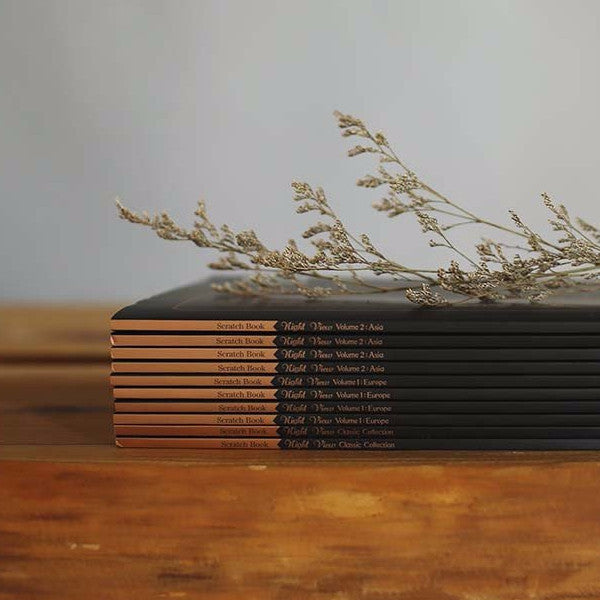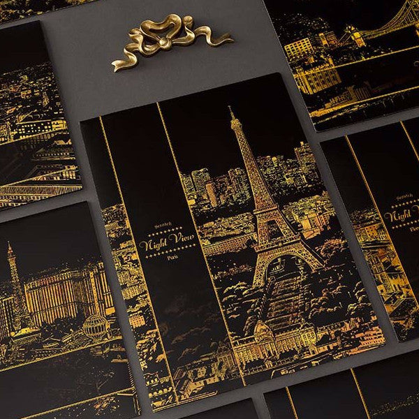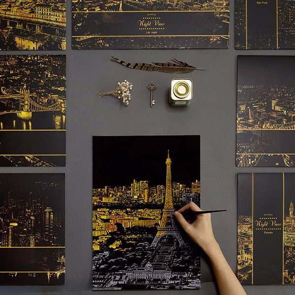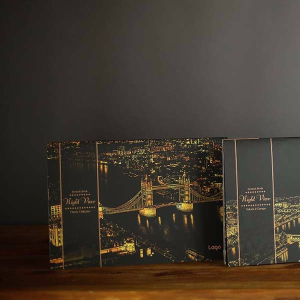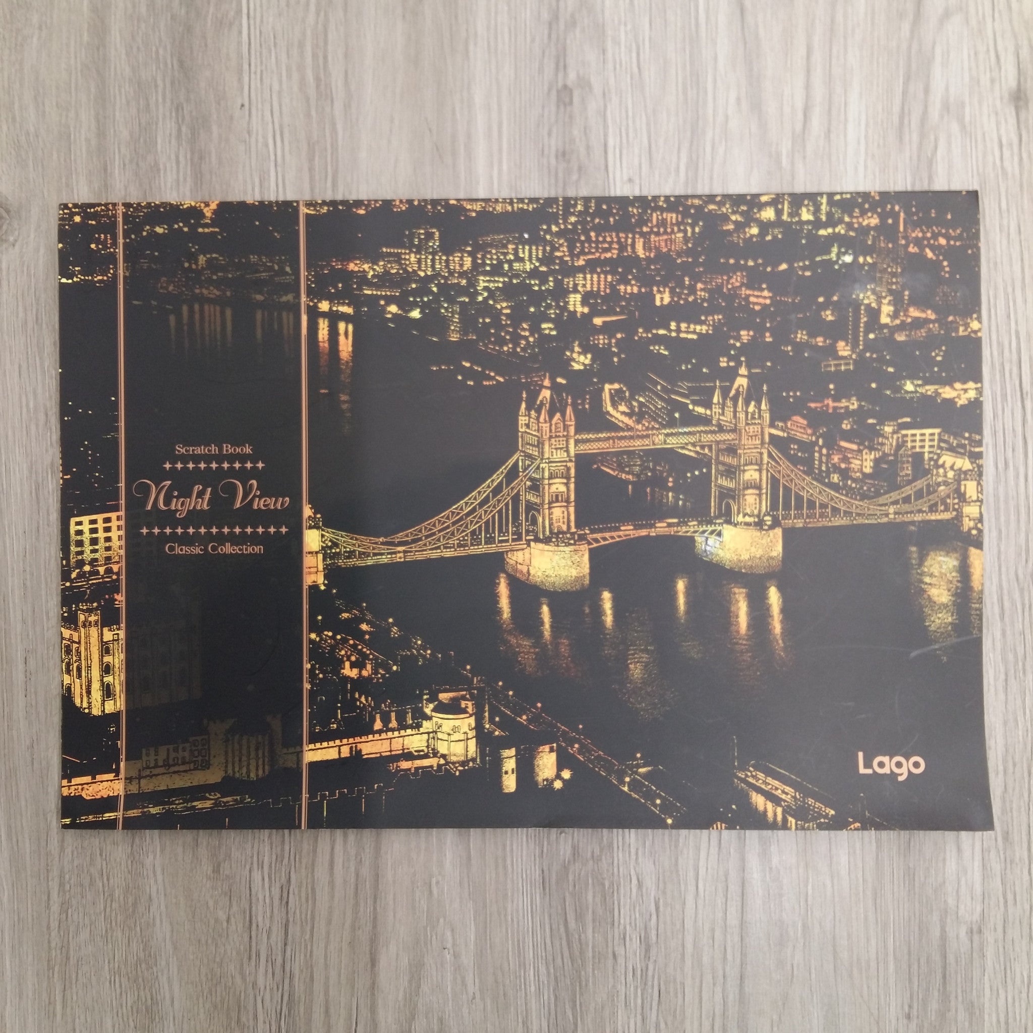 Contents: Scratch Night View Paper x 4 (London, Hamburg, Budapest, Florence), Scratch Blank Paper x 1, Scratch Stick x 1