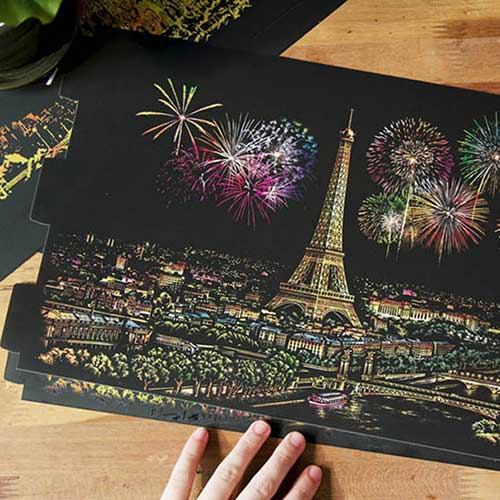 Not talented? Scared of blank paper? Don't worry we got your back. Just like Scratch Coloring Night View series, it comes with beautiful Eiffel Tower outline. All you need to do is to scratch along the gray outline to unveil the beauty hidden in the darkness!