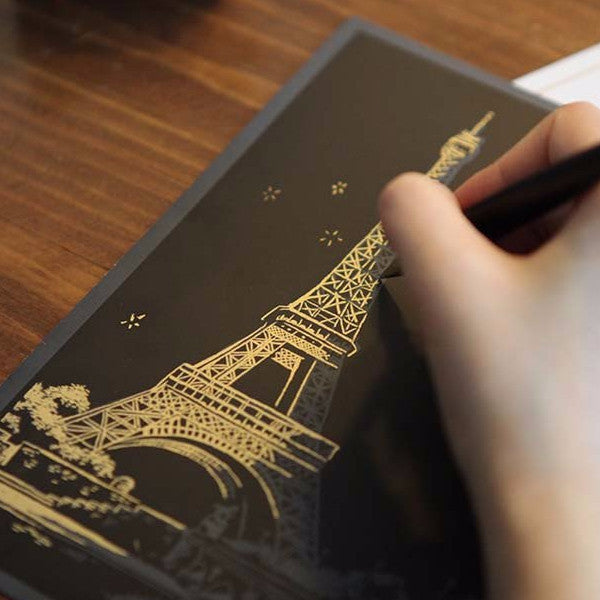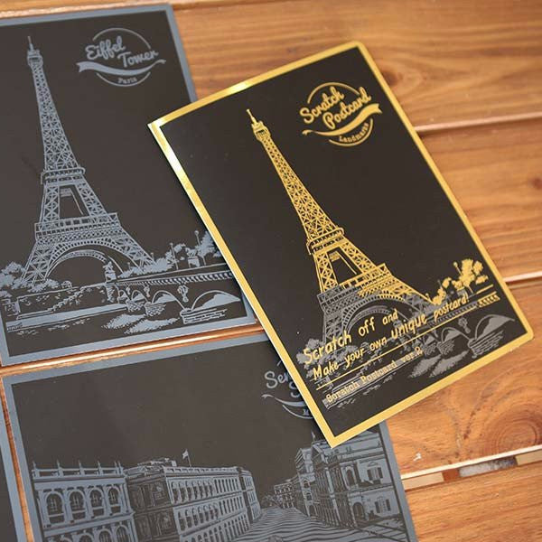 Contents: Postcards x 4 (Eiffel Tower, Senado Square, Parthenon, Himeji Castle) Tracing Paper Envelop x 1 Gold Seal Sticker x 1 Scratch Stick x 1