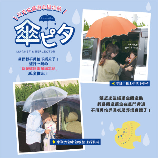 Let Decole Magnet & Reflector Animal Collection easily fix the umbrella beside the car door, don't worry about your clothes and your body get wet !