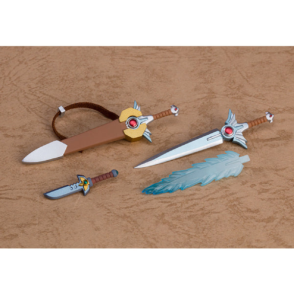 From the legendary Shonen Jump comic turned anime series "Dragon Quest: The Legend of Dai" comes a Nendoroid of the main character Dai! He comes with three face plates including a standard expression, a smiling expression and a shouting expression. Optional parts include right hand parts featuring the Dragon Crest, Dai's sword (with scabbard and hilt parts), his Papnica Knife and an Avan Strash effect part.