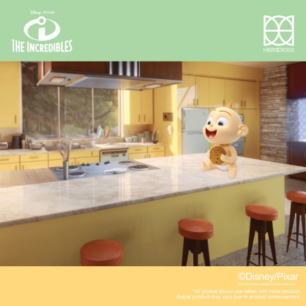 Different from the Superhero image of JACK JACK with his iconic super suit, this time, HEROCROSS accepted the new challenge to make this innocent baby JACK JACK in one-to-one scale. This style is very fresh to the market and worth to collect. And look at his smile, he is so satisfied with the chocolate chip cookie in his hands! Don’t hesitate to bring this adorable baby home as a new family member.